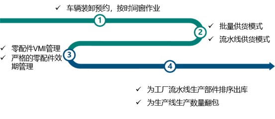 1、全流程需要严格配合JIT生产模式,从零部件供应商的送货,物料出库送生产线,都需要按时间窗作业;